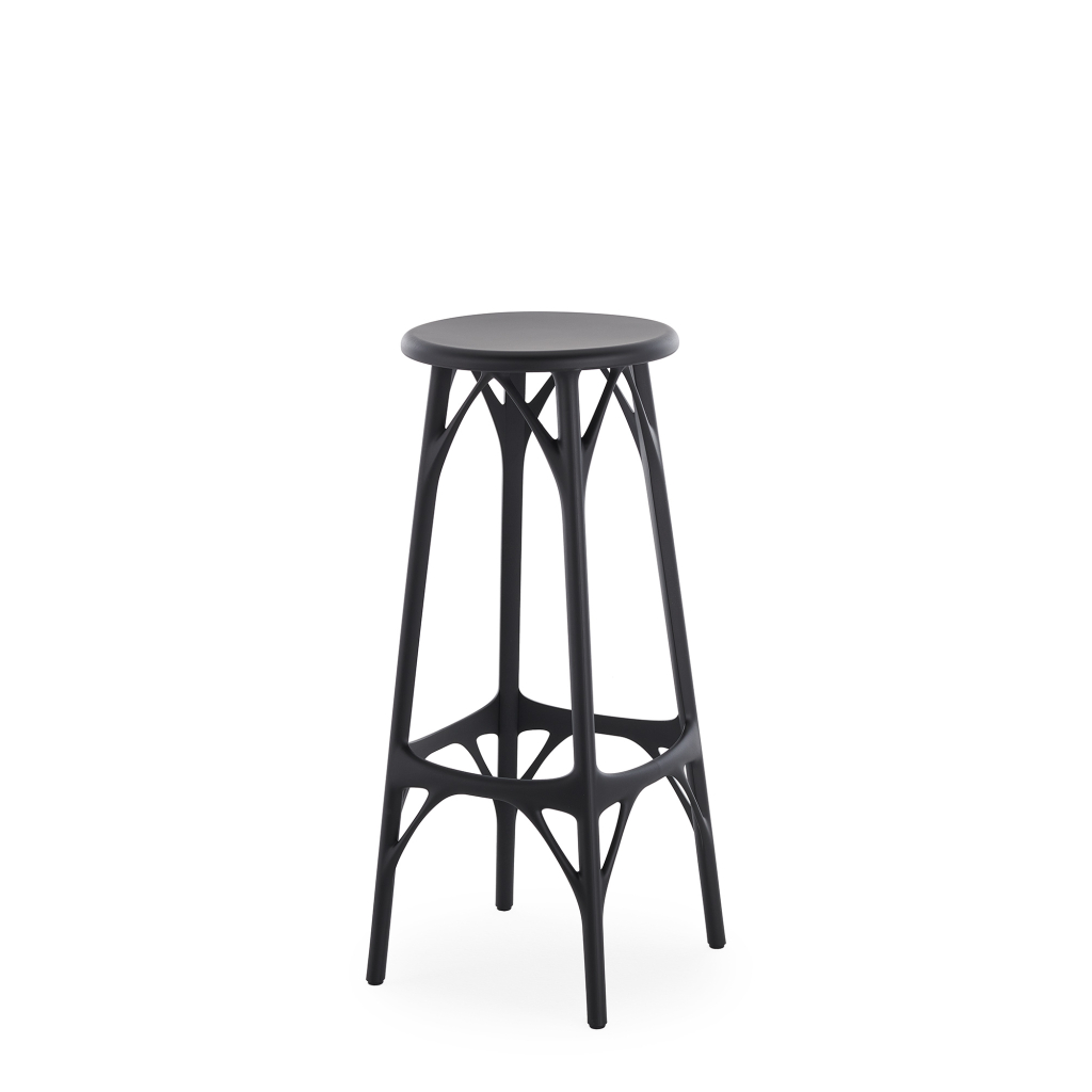 Barová stolička z řady A.I. Chair od designéra Philippa Starcka je vyrobená z recyklovaného plastu. Příjemné posezení nabízí díky širšímu sedáku.