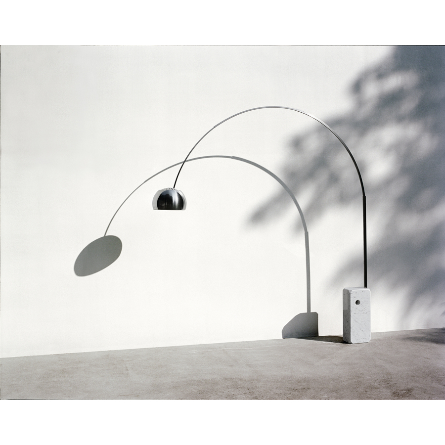 Lampa Arco, navržená v roce 1962 bratry Castiglioniovými, patří k nejznámějším svítidlům na světě. Na základě inspirace běžnou pouliční lampou, Arco přetváří pojetí stropního osvětlení do podoby samostatně stojící lampy, která eliminuje potřebu stropních svítidel či vrtání otvorů. Elegantní, vyklenuté rameno z nerezové oceli, ukotvené v masivním kvádru z carrarského mramoru, směruje světlo přesně nad stoly nebo sestavy sedacího nábytku. Každý prvek má svůj účel: mramor s otvorem pro snadnější přenášení kotví konstrukci, nastavitelné rameno určuje polohu svítidla a perforovaný difuzor reguluje teplo. Arco je učebnicí funkční elegance a ztělesněním filozofie bratří Castiglioniových proměňovat obyčejné nápady v mimořádné objekty.