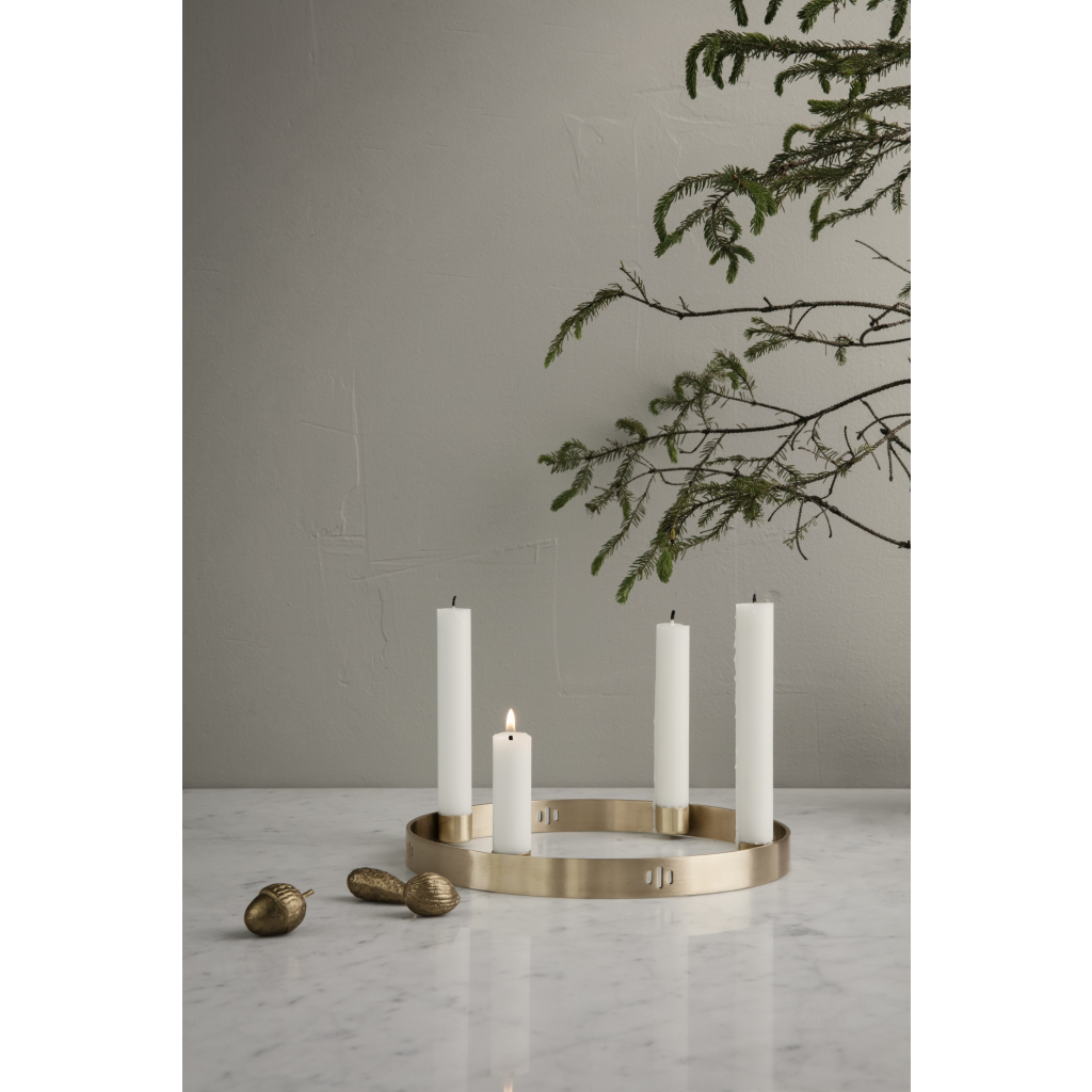 Tento multifunkční a minimalistický svícen z mosazi vypadá krásně postavený uprostřed stolu během rodinné večeře, nebo zavěšený na stropu na odnímatelných šňůrkách. Klasika, kterou využijete každý prosinec.