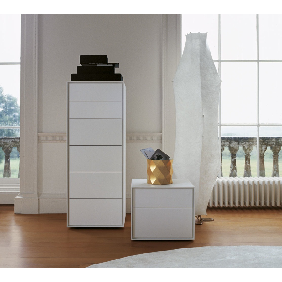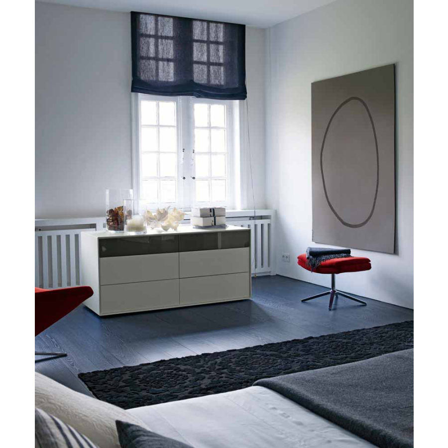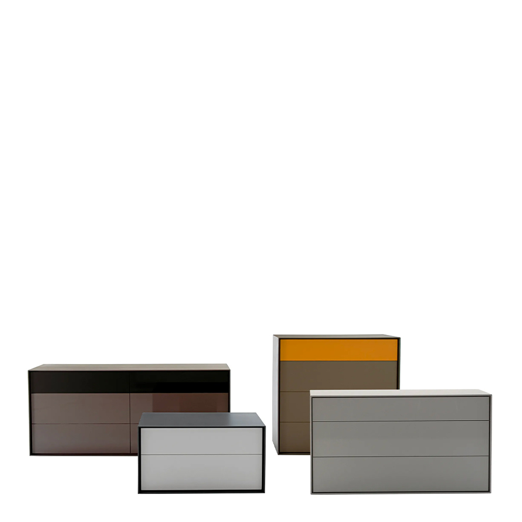 Charakteristickým rysem kolekce Dado je rozdílná hloubka horních desek a boků v poměru k zásuvkám, což vytváří zajímavý estetický efekt. Systém obsahuje komody různých velikostí, na výšku i na šířku, se zásuvkami i s otevřenými poličkami pro všemožné účely včetně možného použití jako noční stolky.