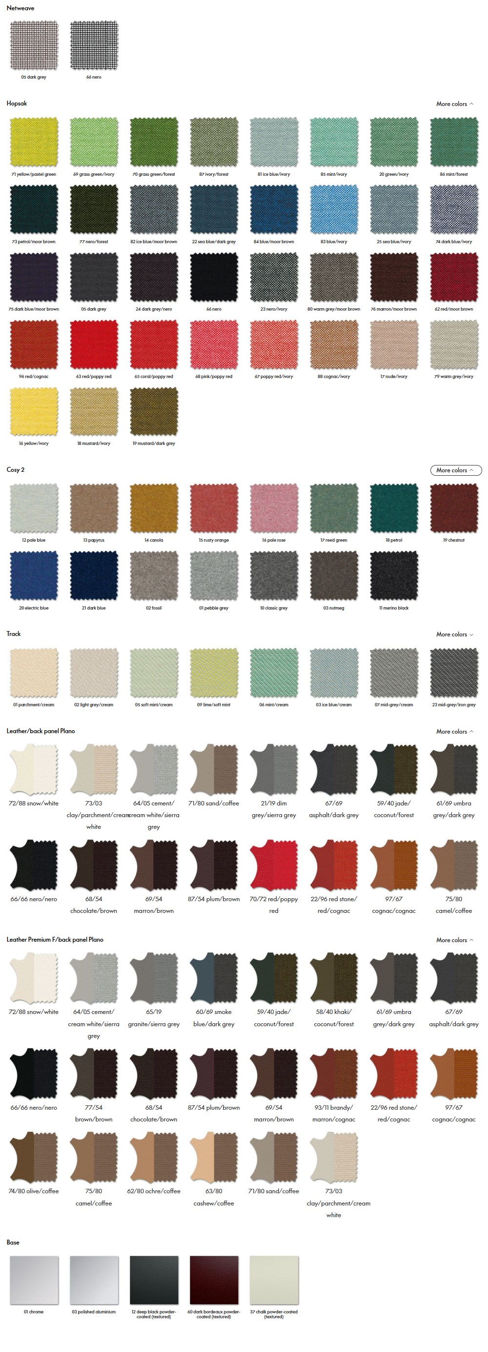 | Material | Leather / Fabric / Chrome-plated aluminium / Powder-coated aluminium |