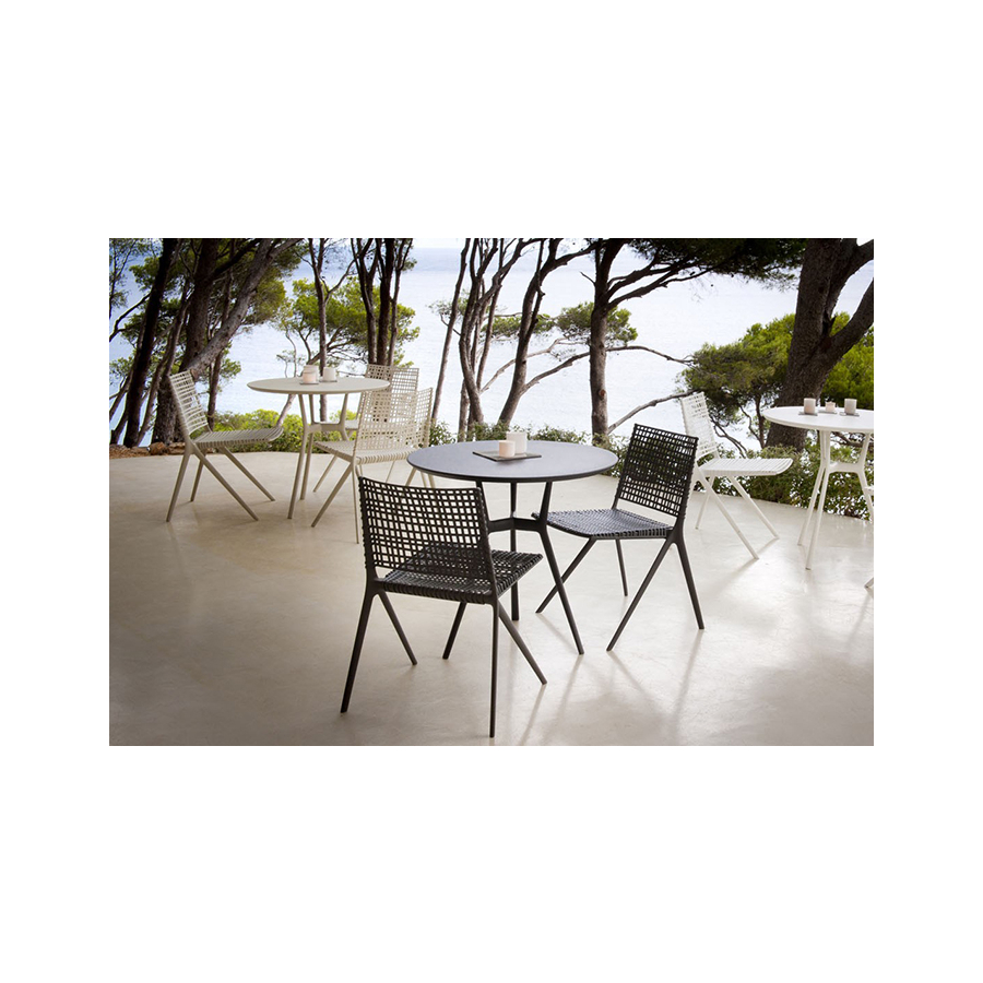 Beneath its airy, slim profile lies a sophisticated structure and carefully selected materials. The die-cast aluminum frame is powder-coated with a double layer, offering superior scratch and UV resistance. The seat and backrest are crafted from polypropylene, reinforced with fiberglass for added durability. The chair offers exceptional seating comfort, thanks to the ergonomic resilience of the backrest. Both aluminum and polypropylene are excellent outdoor materials—easy to clean, weather-resistant, and 100% recyclable. The Branch chair is available with or without armrests and is stackable for convenient storage.