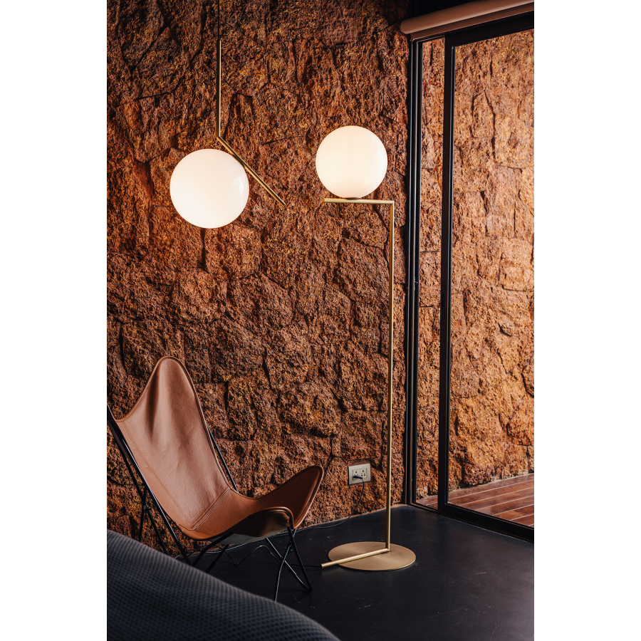 Each piece features a hand-blown opal glass sphere—its diffused glow suspended as if in mid-motion—balanced on the edge of a slender metal rod in brass, black, or chrome steel. This striking composition, inspired by the fluid movements of a juggler, creates the illusion of precariousness while embodying perfect equilibrium. Available in table, floor, wall, ceiling, and pendant versions, the IC Collection offers a versatile lighting solution that blends sculptural presence with soft, ambient illumination. A dimmer on select models allows for precise light control, making each lamp as functional as it is poetic. With its minimalist geometry and refined craftsmanship, the IC Collection captures Anastassiades’ visionary approach—transforming a simple sphere and line into a timeless design statement that feels at once contemporary and enduring.