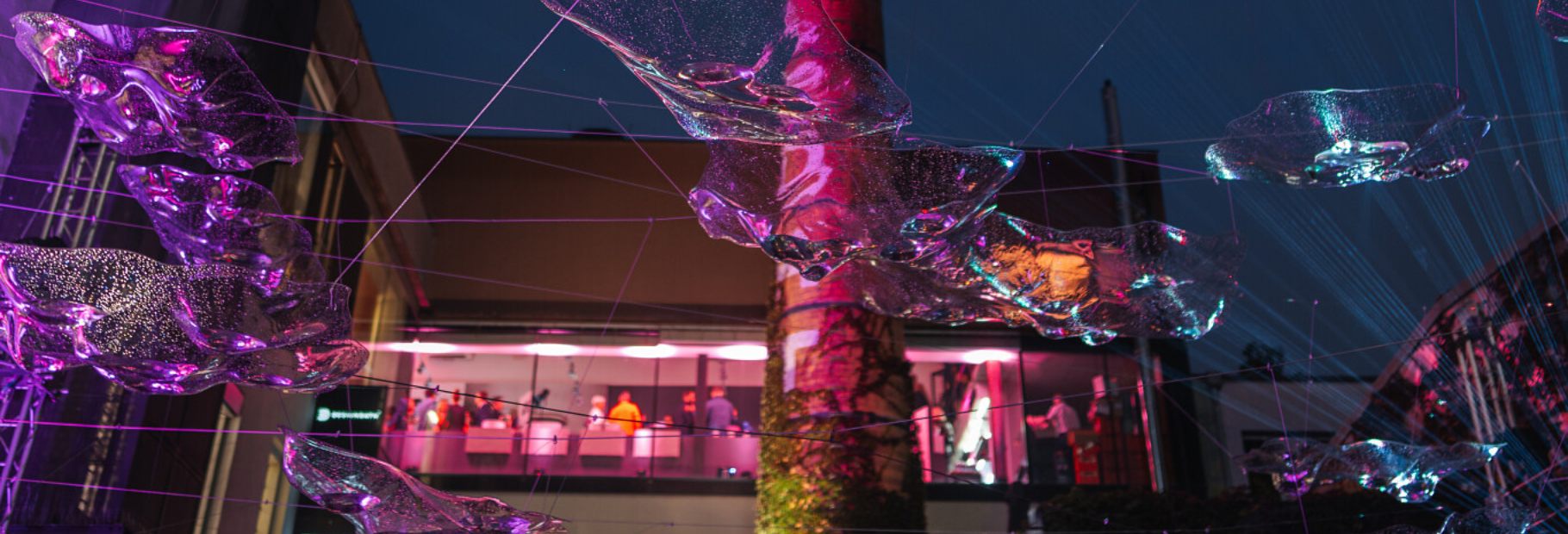Despite the rainy weather, there was a great atmosphere at Holport. We would like to thank everyone who helped create it – the Lunchmeat studio for their breathtaking audiovisual installation Topography of Bold Ideas, which set the Holport courtyard in motion and lit it up.