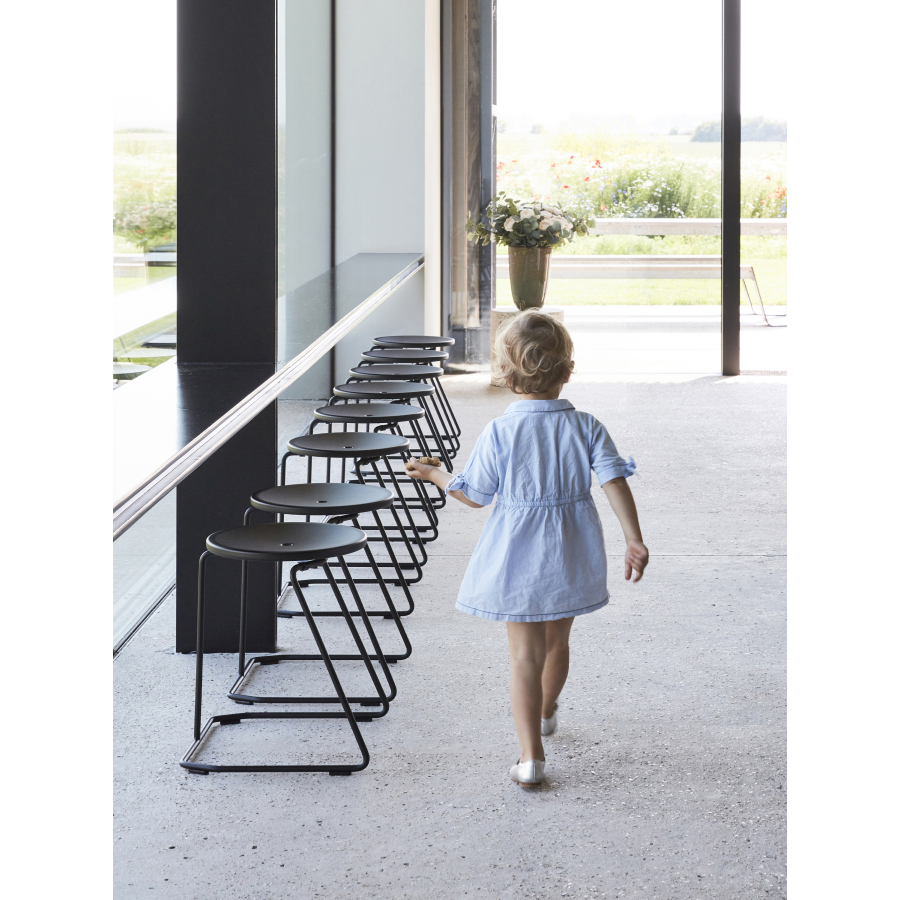 Tiki is the ideal stool for your garden party. The steel legs and seat give the design a pure, uncomplicated line. Or why not opt for a stylish twist, with a wooden seat? With its minimalist contours, this stool blends seamlessly in any party setting whilst offering comfortable seating and support for tired feet. Even with the optional back rest, your guests have optimal freedom of movement to move to the music while sitting down. And if you have more guests than usual, the low stool is especially practical. Pick it up and put it anywhere!
