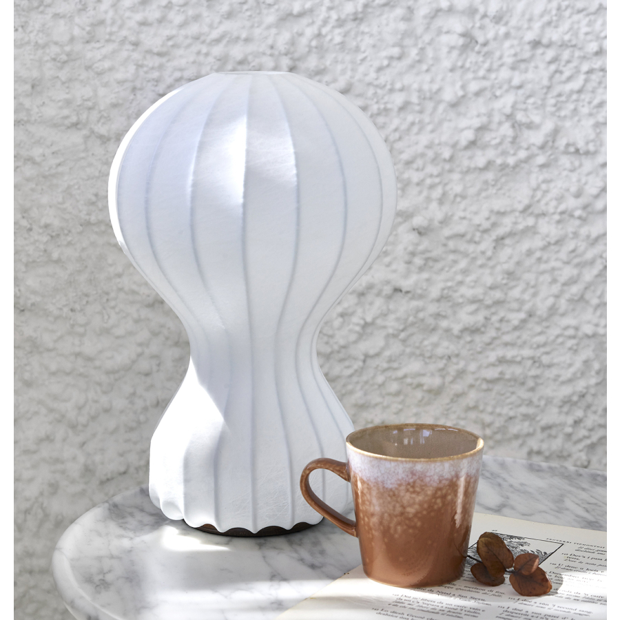 Jméno lampy, které znamená v italštině "kočka", odráží její měkké, zaoblené tvary a tichou nenápadnost; jako kdyby tiše vklouzla do místnosti. Difuzor je vyroben inovativní technikou nanášení pryskyřice na konstrukci z ocelového drátu jako je tomu u mnoha dalších designů ze stejné tvůrčí dílny. Tento proces vytváří texturovaný, oblaku podobný povrch, který jemně a rovnoměrně rozptyluje světlo a vrhá teplou, atmosférickou záři. Organická silueta a na dotek příjemný povrch dodávají lampě Gatto charakter sochařského díla a umožňují jí fungovat jako lampa i jako dekorativní objekt. V jedné ze dvou velikostí, popřípadě v obou velikostech, si lampa Gatto najde místo v různých interiérech—od moderního minimalismu po eklektické, umělecky pojaté prostory—do kterých přinese pocit tiché elegance a trvalého designového dědictví.