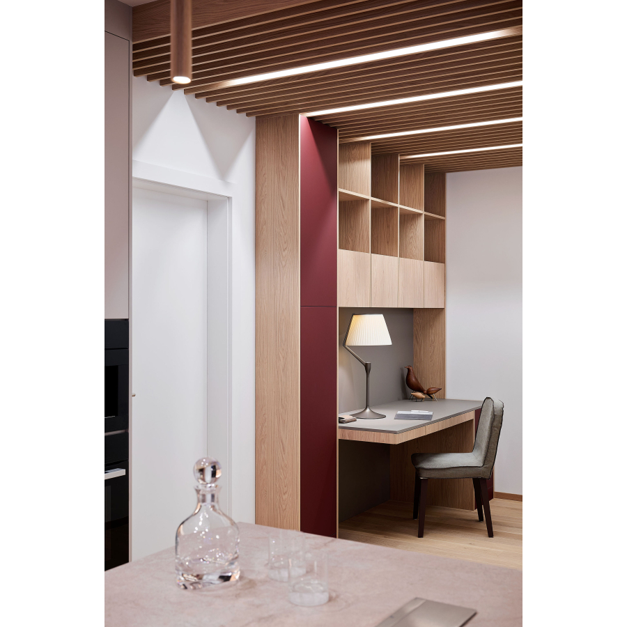 Každý prostor byl navržen individuálně, s důrazem na detail a funkčnost, přičemž zůstává patrná jednotná estetická linie. Stylové doplňky, akcentní svítidla a umělecká díla vnášejí do interiéru osobitý charakter, zatímco pečlivě zvolená materiálová paleta a práce se světlem podtrhují architektonickou logiku celého řešení.