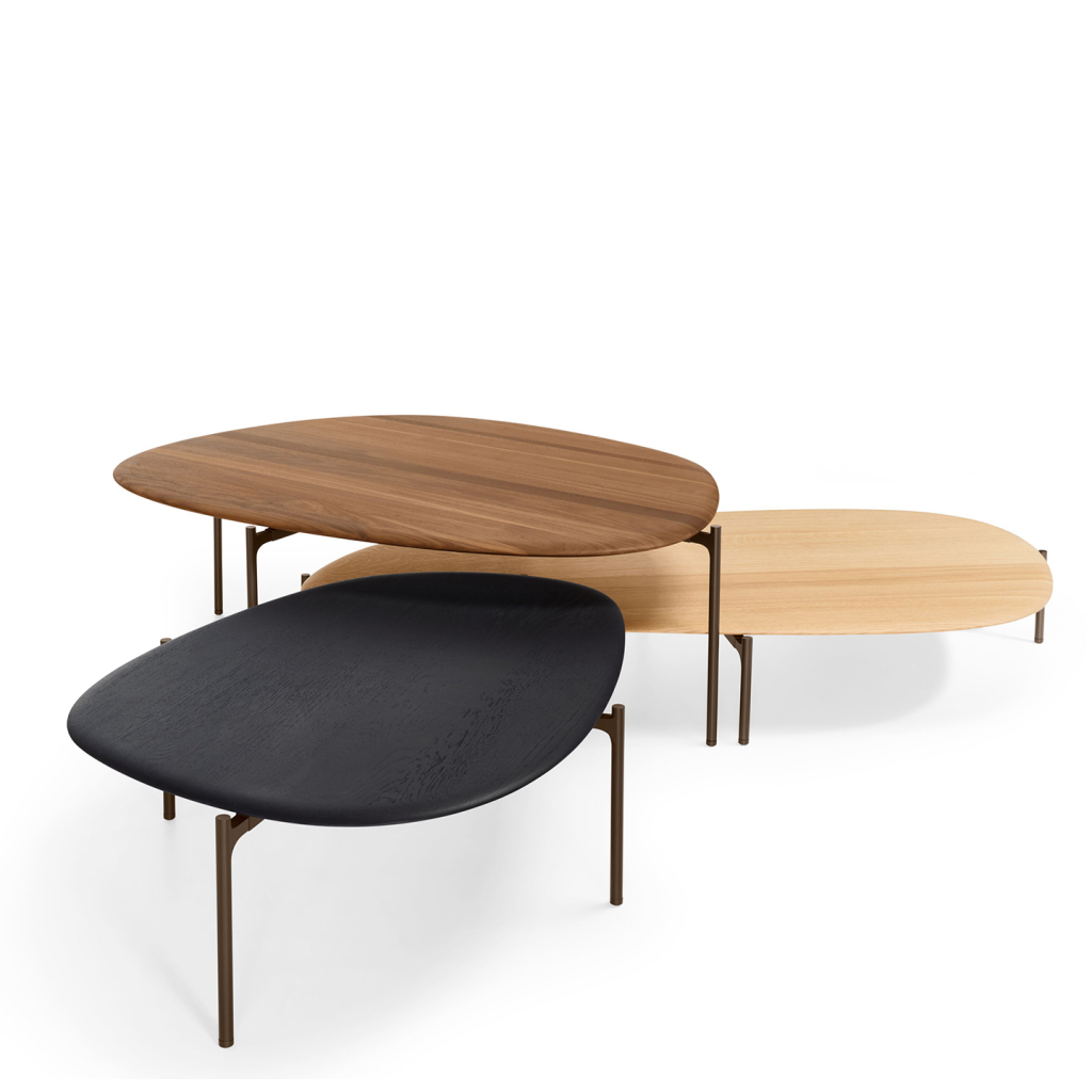 Dřevěné konferenční stolky Ishino jsou dostupné ve třech velikostech a v široké škále povrchových úprav. Stolky svými měkkými, zaoblenými hranami přímo vybízejí k dotyku—lákají vás, abyste si jemně přejeli rukou po jejich hladkém povrchu. Je to hmatový zážitek, který ve vás zanechá trvalý dojem.