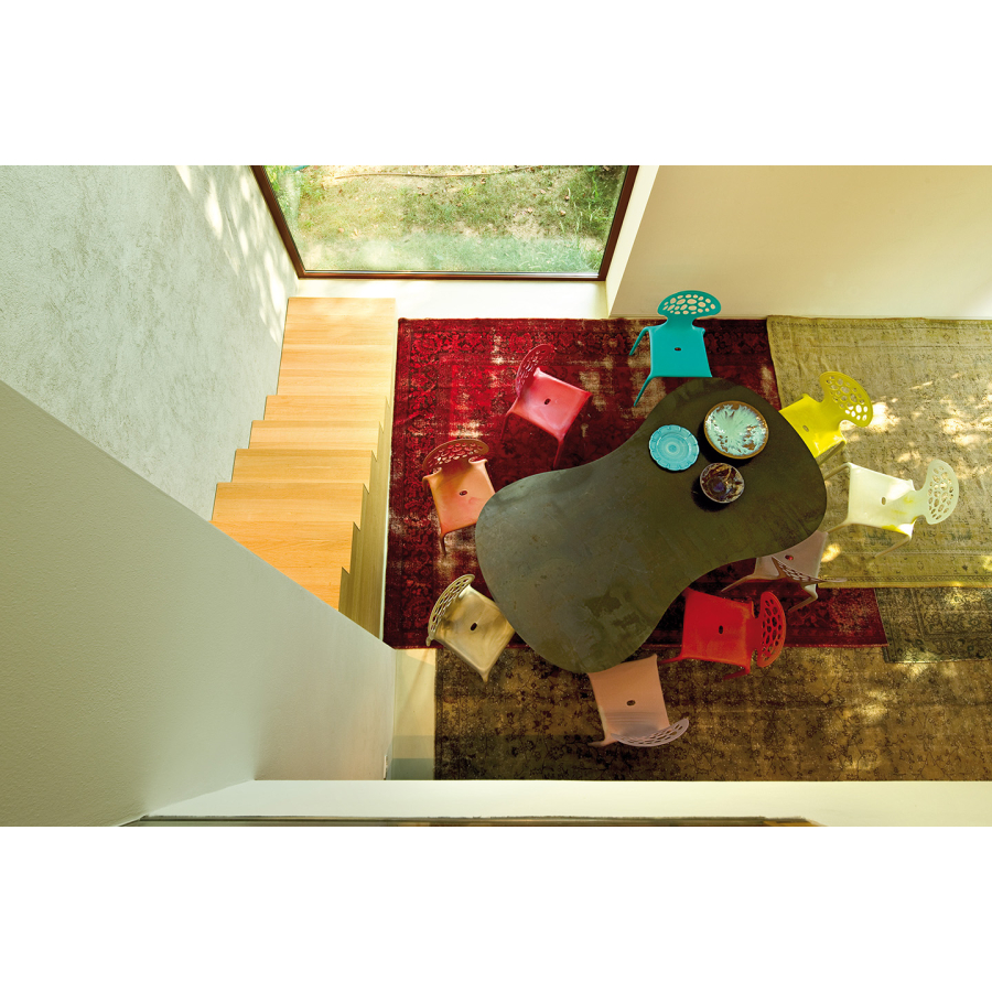 Stoly No Waste se vyrábějí z jedné tabule hliníkového nebo ocelového plechu. Každý řez a každý čtvereční centimetr je přesně vypočítán, nic se nevyhazuje. Konstrukce stolu je precizním cvičením v efektivitě, podobně jako při výrobě automobilových karoserií. Hliníkoví verze je vhodná i pro venkovní použití.