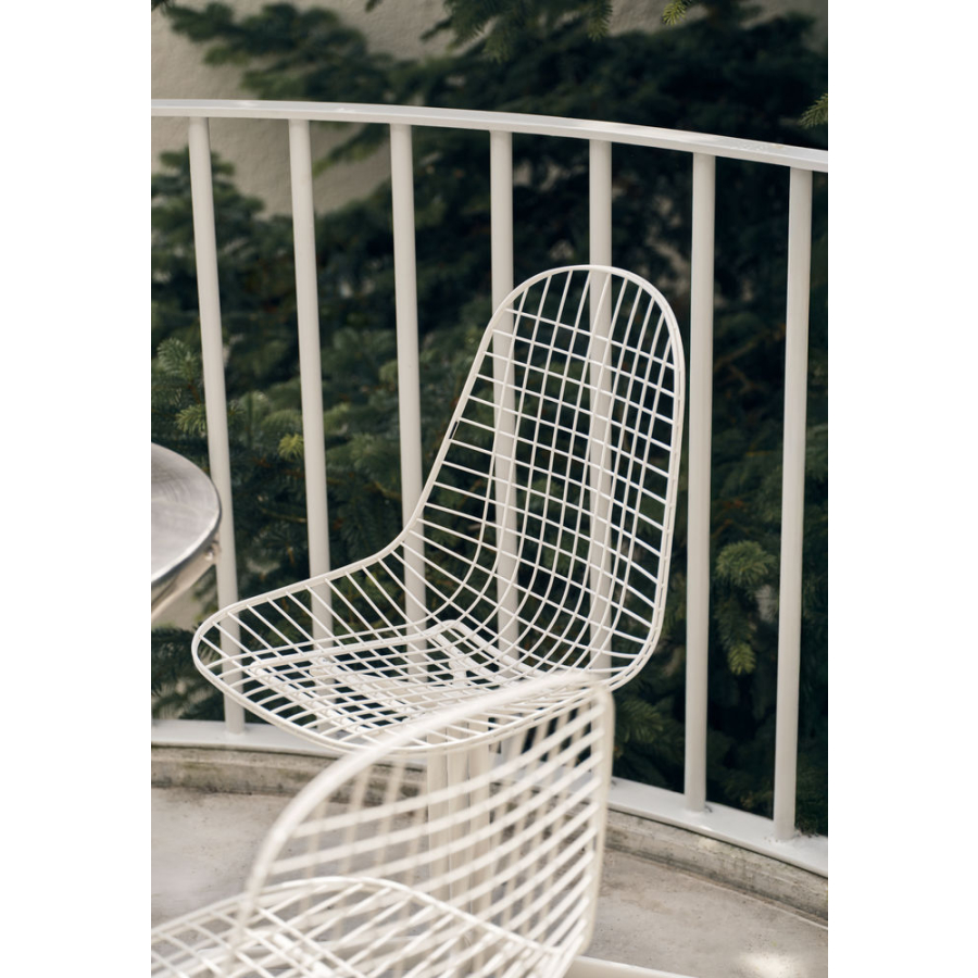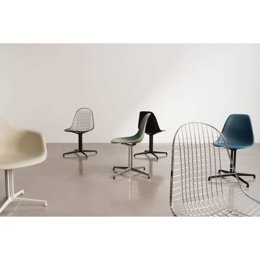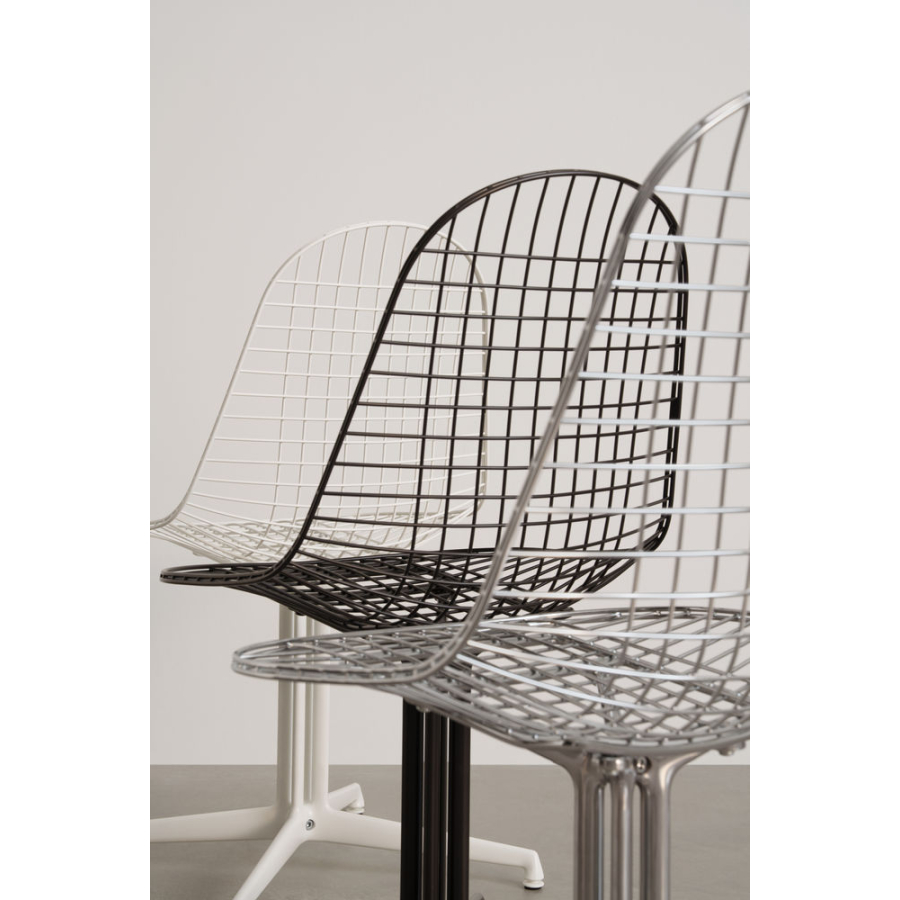 Tvar drôteného sedadla stoličky Eames Wire Chair kopíruje notoricky známe plastové škrupiny ostatných stoličiek od Charlesa a Ray Eamesovcov.
