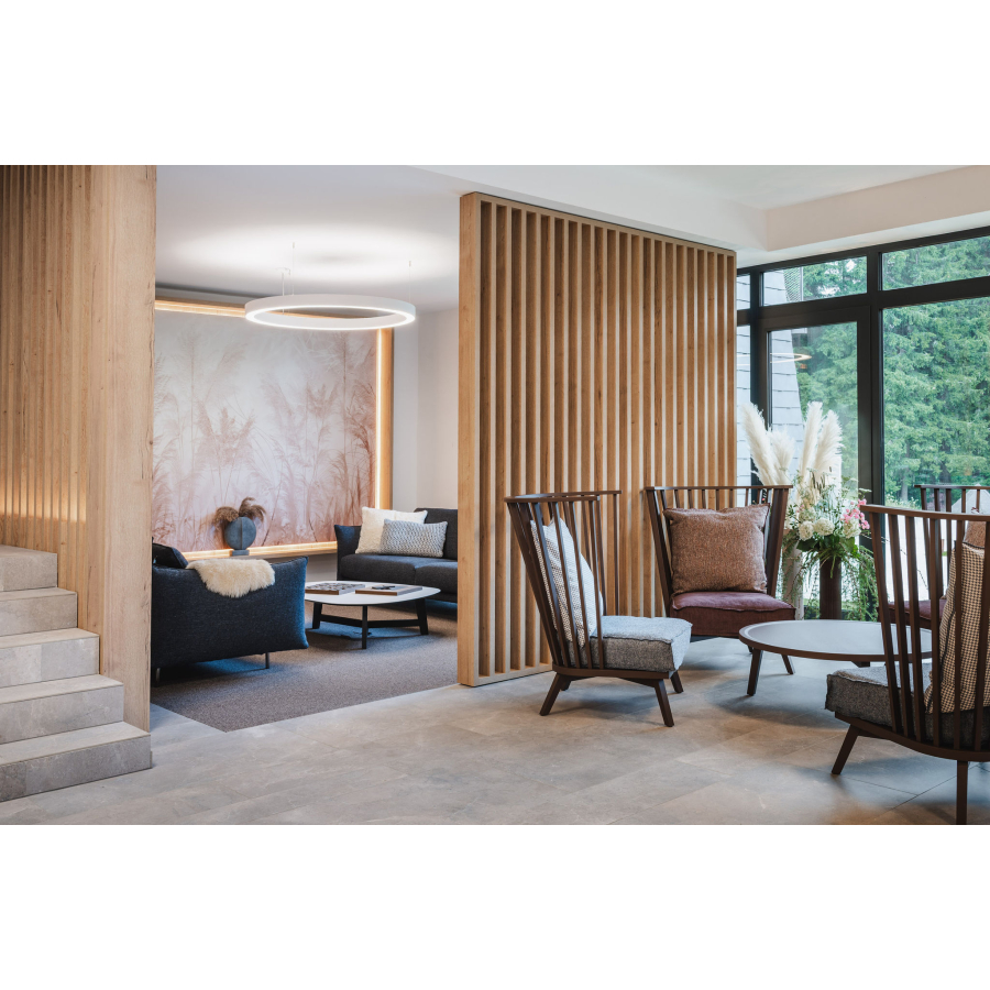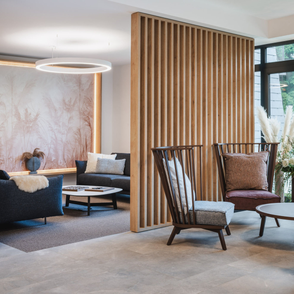Tím architektov z Konsepti Architects Vision, Hana Severová a Jitka Šemberová, navrhol interiéry horského apartmánového hotela z 70. rokov, ktorý prešiel kompletnou renováciou. Výsledkom je harmonické spojenie moderného dizajnu s tradičnými materiálmi a prvkami, ktoré odrážajú charakter lokality. Dominujú tu prírodné materiály – kameň, drevo a textílie v jemných tónoch – doplnené vybranými kúskami súčasného európskeho dizajnu. Nábytok pochádza od renomovaných značiek ako Gervasoni, Molteni a Tribù.
