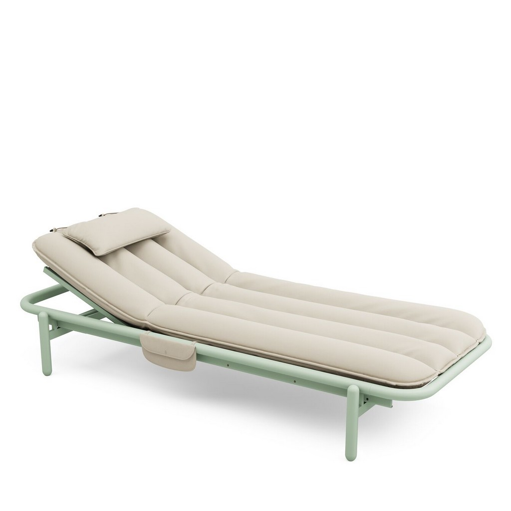 Jeho tvar decentne odkazuje na mäkké, zaoblené siluety inšpirované estetikou 70. a 80. rokov v súčasnom a kvalitnom spracovaní. Stabilný hliníkový rám so šírkou 85 cm je odolný voči UV žiareniu aj poveternostným vplyvom a umožňuje nastavenie do štyroch polôh. Komfortný vankúš z olefínovej tkaniny je priedušný, rýchlo schne a dlhodobo si zachováva svoj tvar. Súčasťou je opierka hlavy aj praktické vrecko na drobnosti, vďaka čomu Sunbun pozýva k nerušenému oddychu pri opaľovaní, čítaní či relaxe.