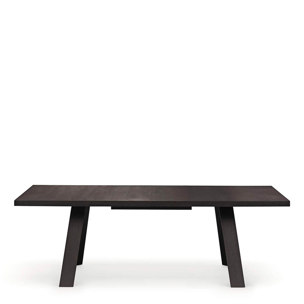 Zdrženlivá elegance stolu Tadeo dodává interiéru uklidňující stabilitu. Je k dispozici ve třech velikostech s maximální délkou tři metry a šířkou 100 cm, což zajistí pohodlí i větší skupině stolovníků. Na výběr je i variabilní model s výsuvným mechanismem. Varianty provedení desky z masivu zahrnují ořech a bělený nebo opalovaný dub. Jako nosné prvky jsou na výběr klasické nohy z masivu nebo atraktivní podnož se zkosenými panely z lakovaného hliníku.