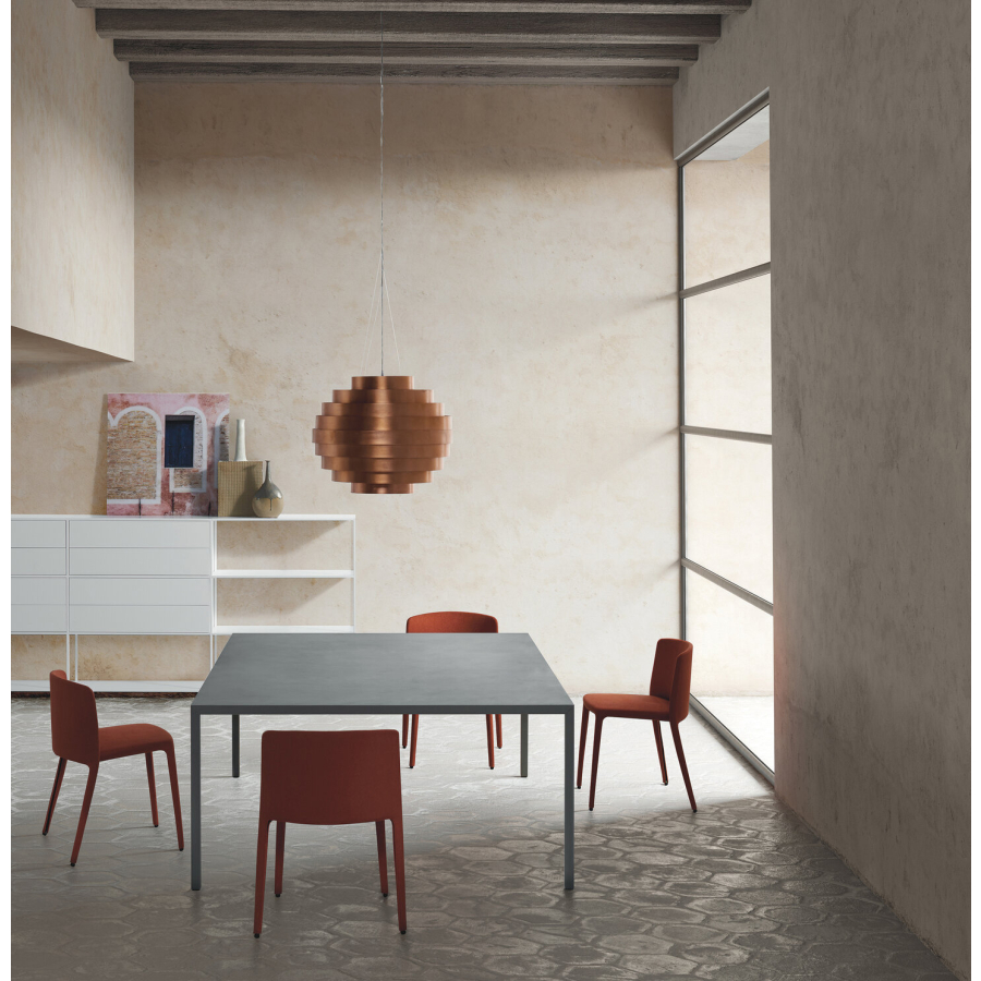 Tense Material Stone spojuje charakteristickou lehkost stolů z kolekce Tense s autentickým vzhledem povrchu z rekonstruovaného kamene.